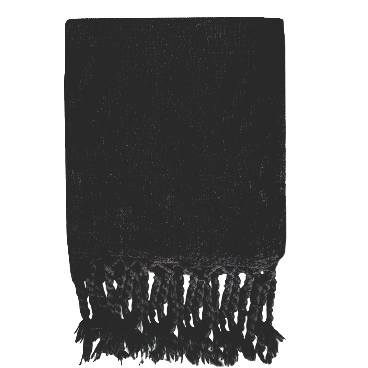 Alpaca Silk Scarf Fringe Black hand-knit